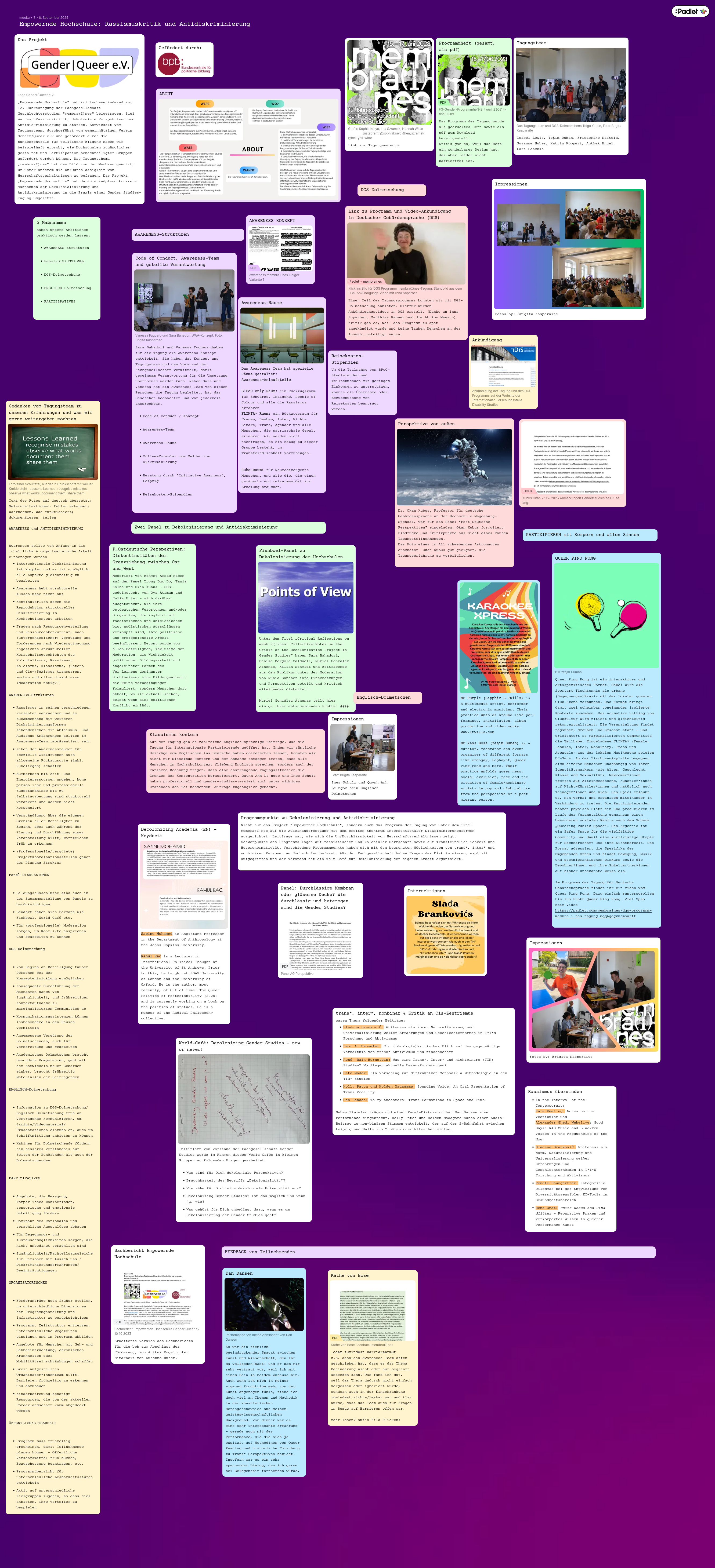 Der Aufsatz reflektiert auf das Projekt „Empowernde Hochschule: Rassismuskritik und Antidiskrimininierung umsetzen“, das im Rahmen der Jahrestagung „membra(I)nes“ der Fachgesellschaft Geschlechterstudien/Gender Studies 2023 durch Verein Gender/Queer e.V. (unter Leitung der Autor*in) umgesetzt wurde. Dies erfolgt entlang zweier Online-Padlets, die im Vorfeld und zur Dokumentation des Projekts und der Tagung erstellt wurden. Inhaltlich geht es um Möglichkeiten und Grenzen des Barriereabbaus sowie praktischer intersektionaler Herrschaftskritik und Antidiskriminierung auf einer akademischen und künstlerisch-forschenden Tagung. Insbesondere Gebärdendolmetschung und die Inklusion Tauber Teilnehmender spielt eine wichtige Rolle.